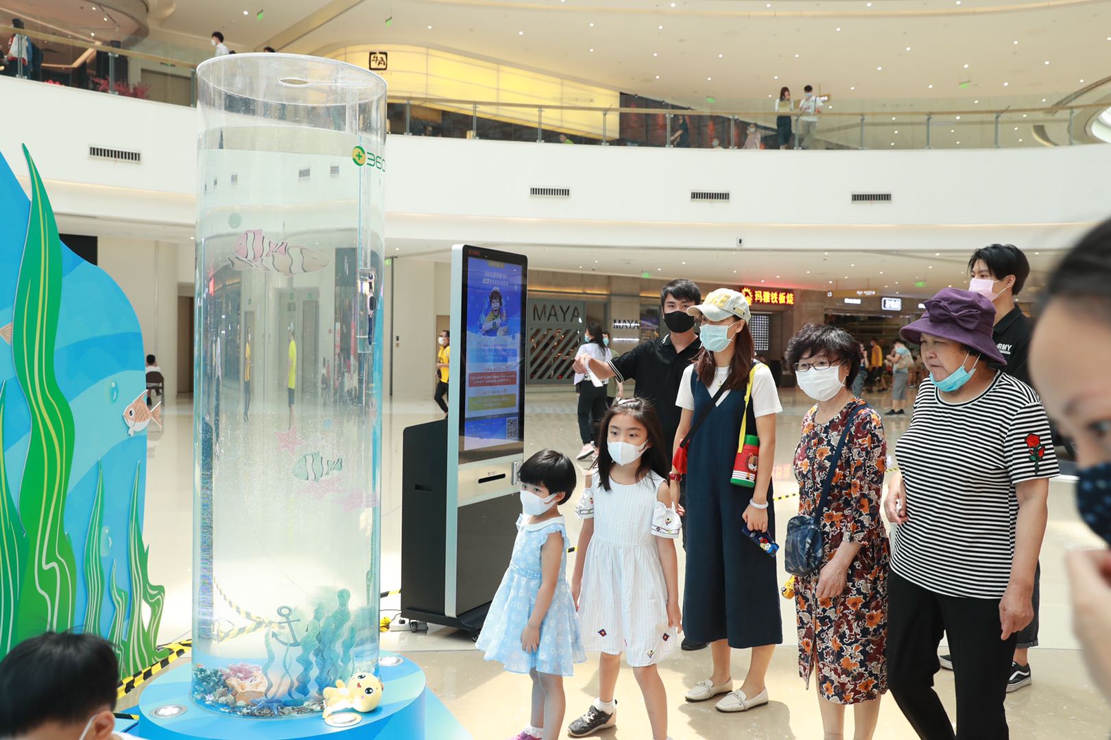 5月30日上午,北京合生汇五层中庭人声鼎沸,在家长的陪护下,一群孩子在20米游泳级防水体验馆里玩的不亦乐乎。之所以这场活动人气如此之高,主要是因为这次担任水下摄影师的不是真人,而是360儿童电话手表9X。