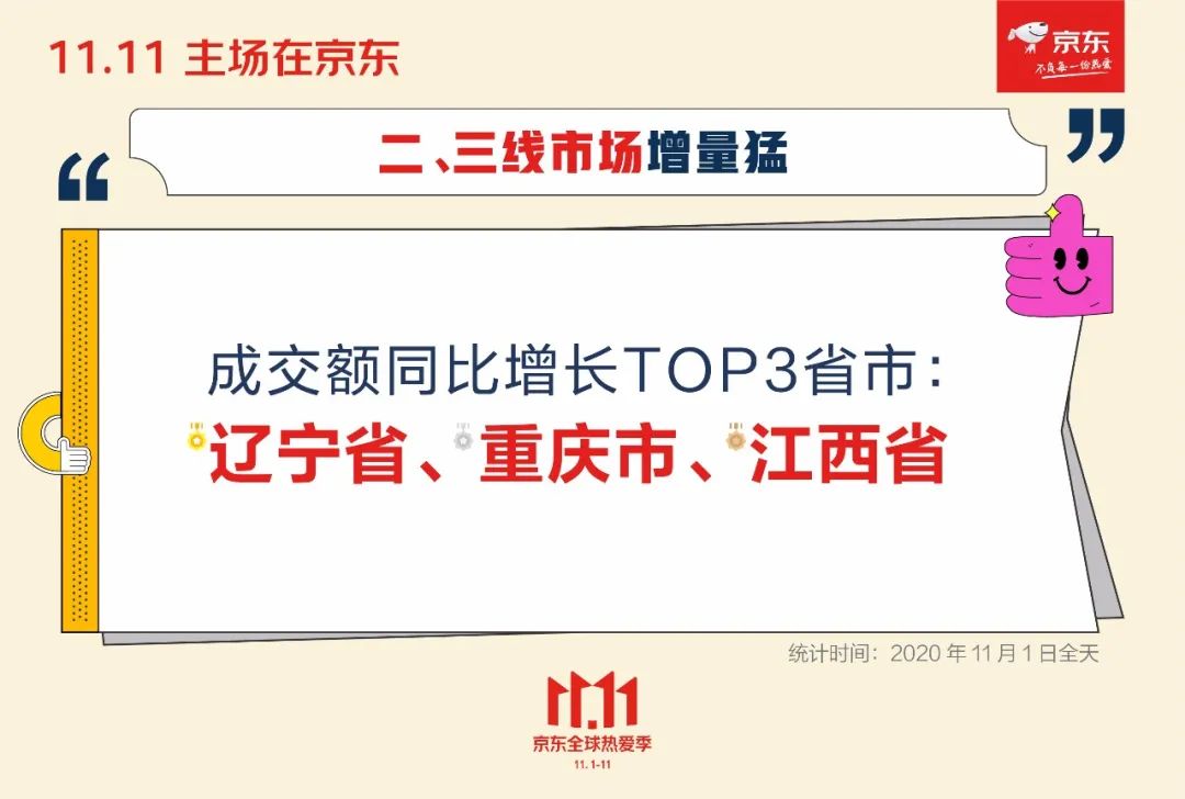 从全国市场首日消费特色分析,二三线市场的消费总量猛增,其中辽宁省、重庆市、江西省成为增速排名前三的省市。开门红的火爆销售,再次印证了在疫情防控常态化以及国内大循环为主体的新格局下,中国消费市场的中长期上行趋势。