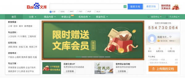 自2009年上线至今,百度文库一直以“让每个人平等地提升自我”为目标,尽可能将知识分享到每一个被需要的角落。至今,百度文库已经积累了超过5亿份文档、18万名专业认证的优质内容生产者。百度文库K12垂类已成为全国最大最全的教育资源平台,同时还在持续深耕法律、建筑、金融、学术论文等领域。百度知识垂类旗下的其他产品和业务,如百度知道、百度百科、宝宝知道、百度经验、百度学术及创新产品等,也成为了各领域的领头羊,在知识用户群体中拥有广泛的知名度和良好的口碑。