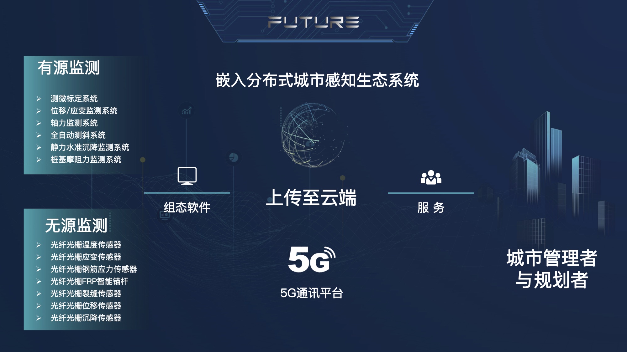 当然这一系列的监测少不了完善的测量设备及手段。菲伽智能独立研发的“多模态物理量感知系统”包含城市公共设施安全组态软件与7大监测系统,全面覆盖有源与无源监测手段。在有源监测方面,位移测量精度可达0.1微米,倾斜角度精度可达0.01度。同时利用太阳能供电,更能实现全天候无人值守的数据采集。不仅测量精度高,同时也极大的提升了监测效率,在全球范围内均为领先水平。无源监测方面,光纤光栅调制解调器可每秒对10000个传感器进行采集,而美国同类公司目前每秒可采集的传感器数量为3200个,完全走在了世界前列。