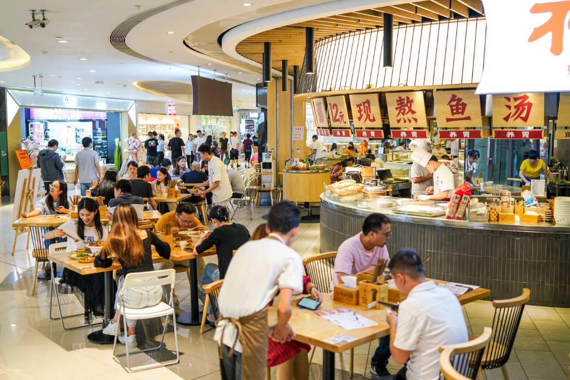 (每到饭点,这家成都银泰城新开“不火鱼汤粥”总是人气十足。)