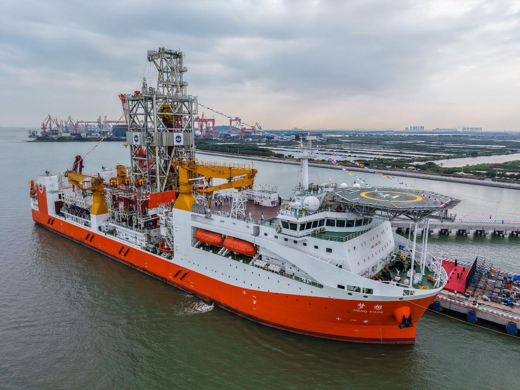 我国自主设计建造的首艘大洋钻探船“梦想”号(无人机照片)。新华社记者 刘大伟 摄