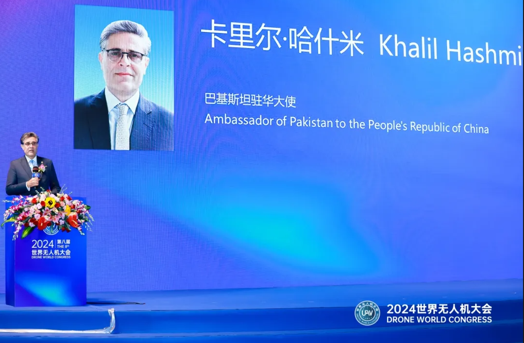 全国政协委员、国际民航组织原秘书长、中国民航局原党组成员柳芳,中国国际经济技术合作促进会理事长、国家公务员局原副部长级副局长杨春光,中国民用机场协会理事长王瑞萍、中国信息协会副会长兼秘书长李红,巴基斯坦驻华大使卡里尔·哈什米,泰国前副总理、东盟—中国工商总会荣誉会长、世界无人机联合会荣誉主席蓬贴·帖甘扎纳,欧洲科学院院士、世界无人机大会主席、深圳市无人机行业协会会长杨金才先后致辞。