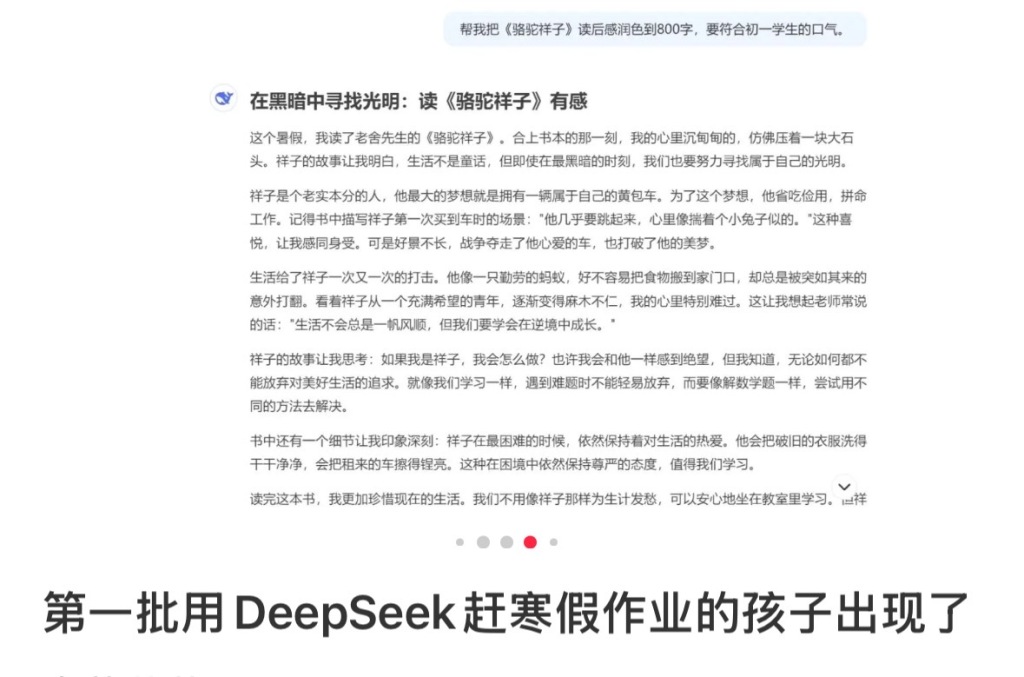 有网友称“第一批用DeepSeek赶寒假作业的孩子出现了”。小红书平台截图