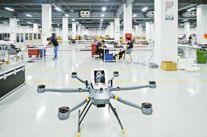 6月28日,成都纵横自动化技术股份有限公司的技术人员在无人机生产线上组装新型号无人机。