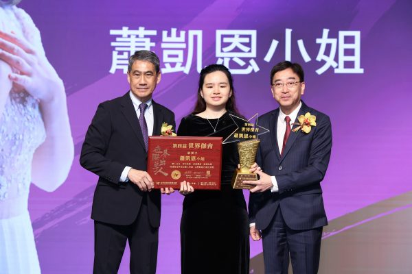 “世界杰青·世界杰出华人青年奖”获得者是前香港小姐冠军刘倩婷,视障女钢琴家、感动中国2023年度人物萧凯恩小姐。上届获奖者则有中国香港花剑运动员、两届奥运金牌得主张家朗和中国香港游泳运动员“女飞鱼”何诗蓓。