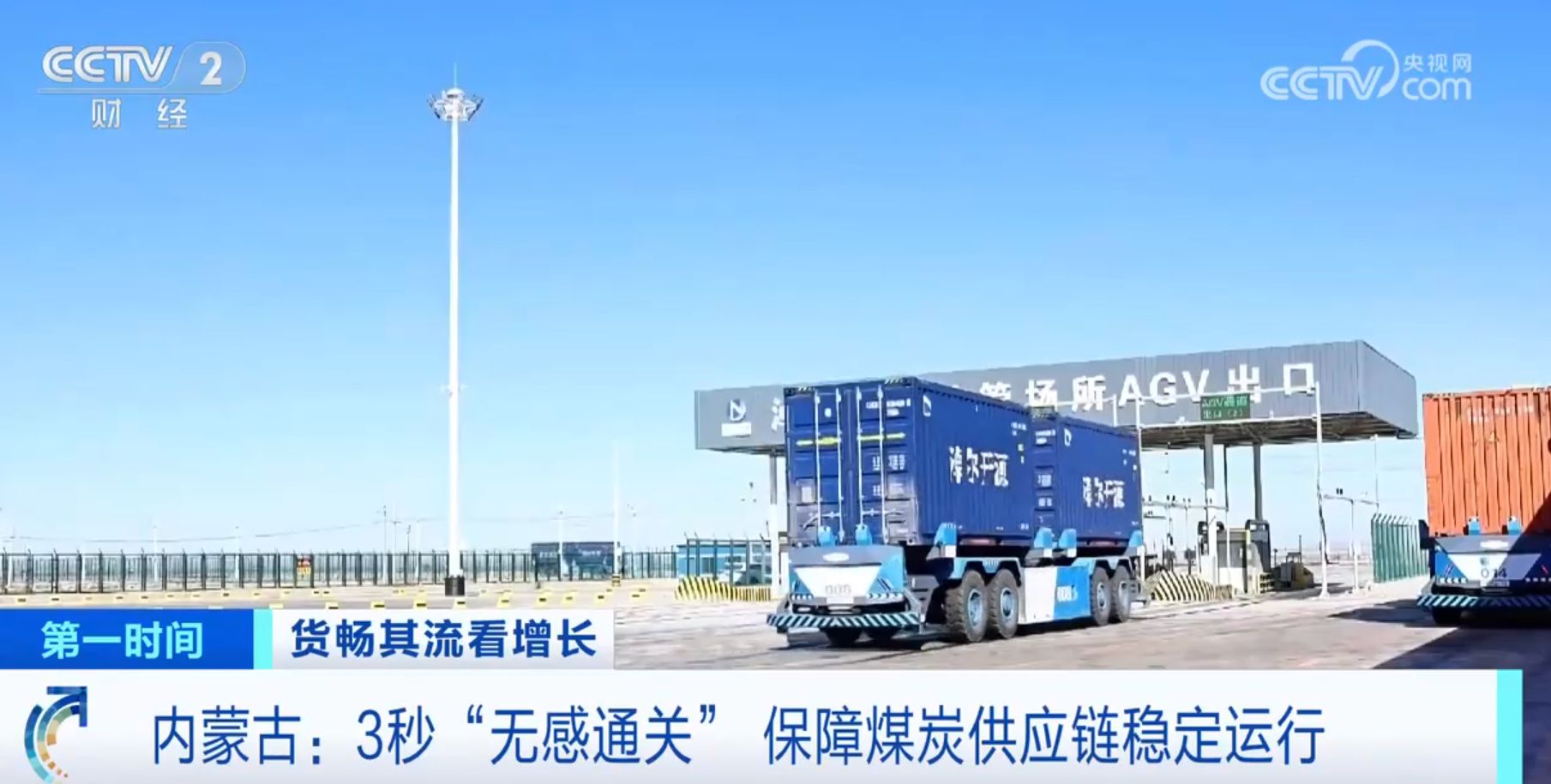 除了快件包裹,眼下,大宗散货运输需求也在增多。海关数据显示,今年前三季度,我国大宗商品进口量稳定增加。其中,原油、天然气、煤炭等能源产品9.01亿吨,增加4.8%。在内蒙古甘其毛都口岸,过去,满载煤炭的货车常年排成长龙。如何疏解口岸跨境运输压力,提升进口货物的通关效率?AGV,也就是自动导引车在这里大显身手。我们继续来看。