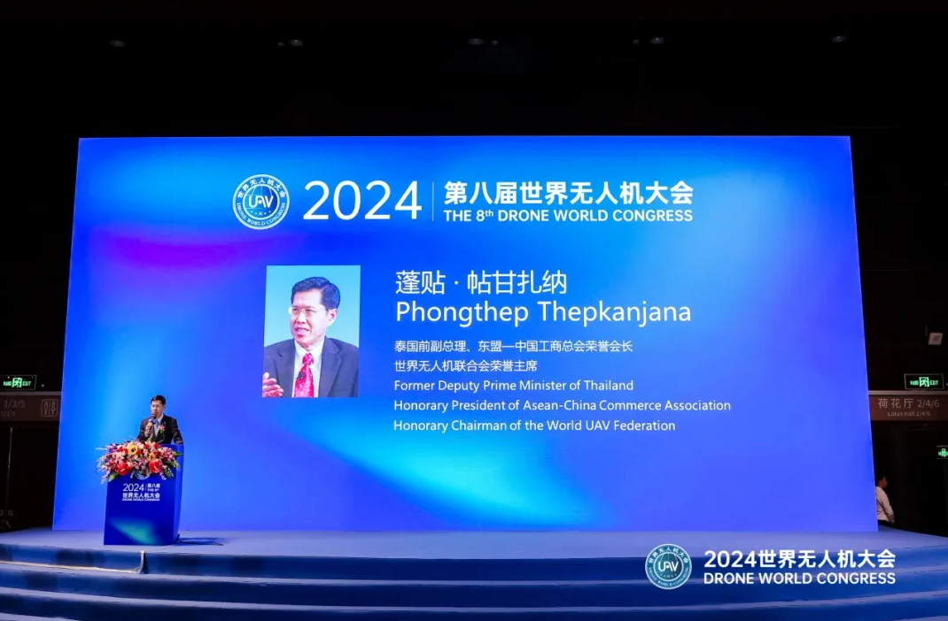 全国政协委员、国际民航组织原秘书长、中国民航局原党组成员柳芳,中国国际经济技术合作促进会理事长、国家公务员局原副部长级副局长杨春光,中国民用机场协会理事长王瑞萍、中国信息协会副会长兼秘书长李红,巴基斯坦驻华大使卡里尔·哈什米,泰国前副总理、东盟—中国工商总会荣誉会长、世界无人机联合会荣誉主席蓬贴·帖甘扎纳,欧洲科学院院士、世界无人机大会主席、深圳市无人机行业协会会长杨金才先后致辞。