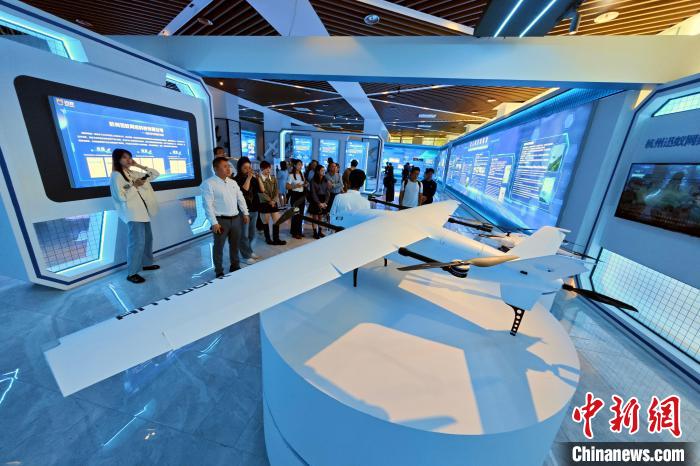 11月12日,福建省福州市高新区“榕创汇”无人机(系统)孵化器里的各种低空应用型无人机吸引了许多人的目光。随着低空经济蓬勃发展,福州高新区大力发展无人机产业,已经引进蜂巢航宇、穿越医疗、福州中岳航空、空间矩阵、自由飞跃、迅蚁科技等无人机研发企业,产业链上下游企业配套完善。图为具备挂载能力可垂直起降的固定翼无人机。中新社记者 王东明 摄